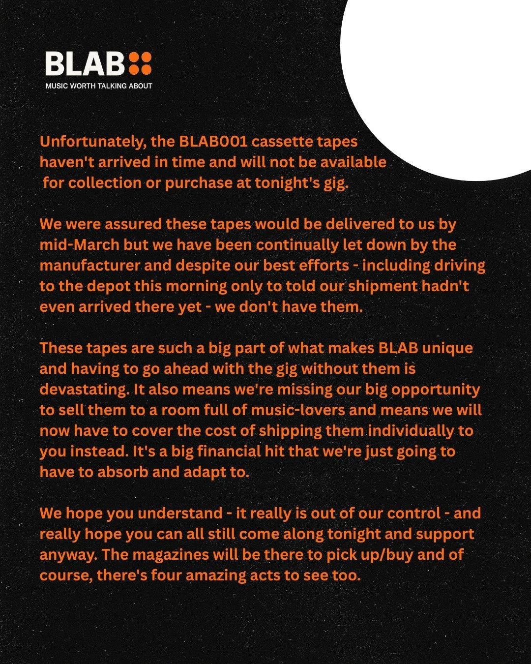 Curation, collection and connection are at the heart of BLABβs mission; one which celebrates an ever-evolving but always urgent music landscape.